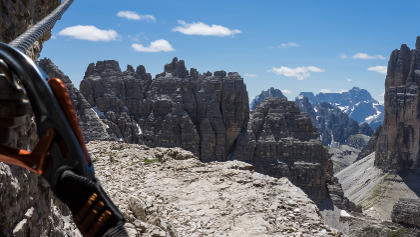 The Italian name "Via Ferrata" - in English "iron path" - already reveals what it's all about on via ferratas: steep paths through alpine terrain and directly on rock faces secured with steel ropes, iron steps, stairs, clamps and ladders. Unlike alpine climbing, the route on the via ferrata is pre-determined.